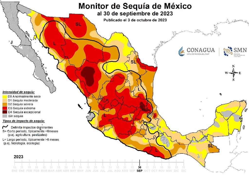 “Es prácticamente el 80 % del territorio nacional, que se encuentra bajo alguna condición de sequía; no se había presentado una de tales características en México, desde el año de 1957. Realmente tenemos una preocupación, en la cual hay que ocuparnos”, señaló.