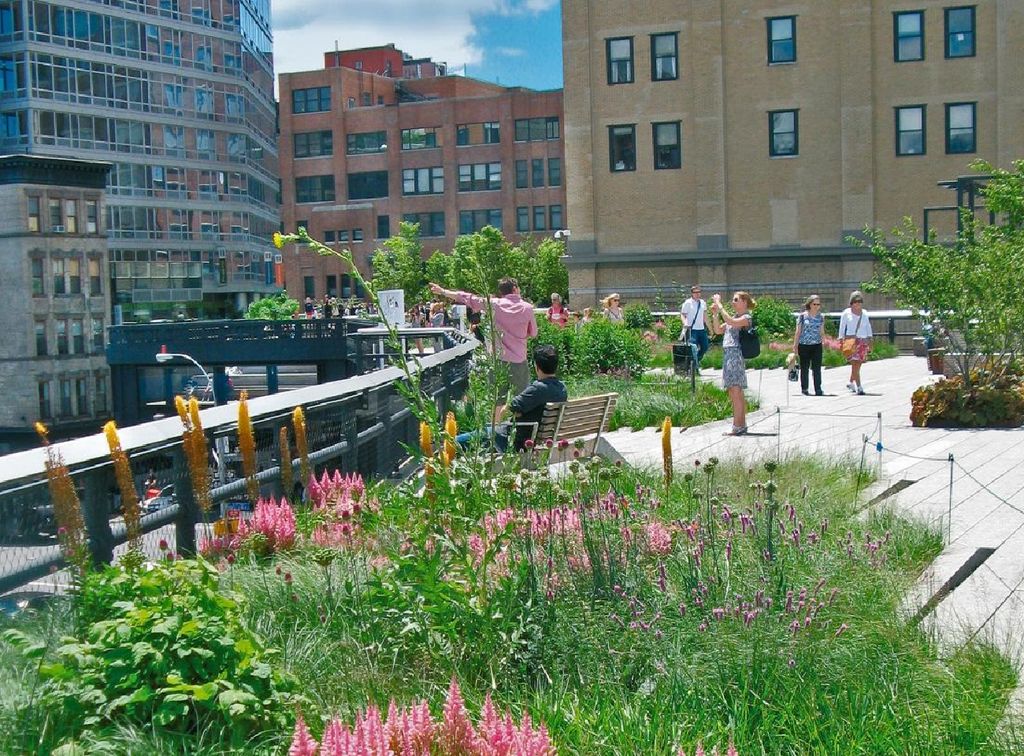 Dentro de los Estados Unidos y en la ciudad de nueva York está la calle High Line; en realidad es un gran parque o jardín urbano que une durante varios kilómetros a la gran urbe. Gran espacio lleno de vida que mezcla bancos y estructuras urbanas con áreas verdes; construido en el 2009 sobre antiguas líneas de ferrocarril.