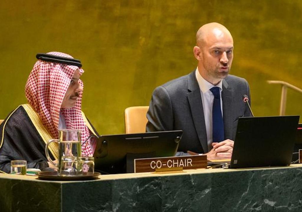 Presentado por los representantes de Francia y Arabia Saudita, el documento que contiene siete páginas hace el llamado a una acción colectiva, con la intención principal de poner fin a la guerra desigual, que se lleva acabo encontrar de la población de Gaza, y así buscar una solución justa, pacífica y duradera del conflicto israelí-palestino basada en la implementación efectiva de la solución de dos Estados.