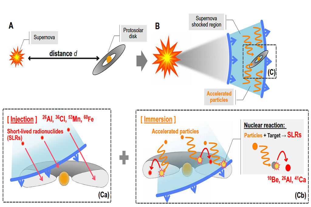 Durante décadas, la explicación más aceptada fue que una supernova cercana había inyectado directamente elementos radiactivos de vida corta en el disco protoplanetario que rodeaba al Sol durante sus primeros millones de años de existencia.