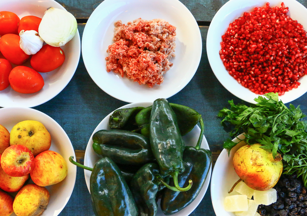 La mezcla de granadas, peras, manzanas, poblanos, jitomates y elotes se transforma en platillos que no solo llenan el estómago, también cuentan historias. En cada bocado hay un pedacito de tradición, en cada color un guiño a nuestra identidad. Verde, blanco y rojo que no solo se ven en la bandera, también en el plato.