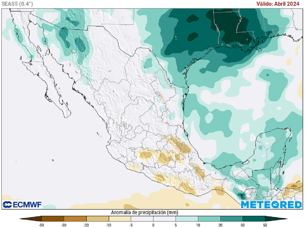 De acuerdo con la nueva salida del ECMWF, modelo de referencia en Meteored, se pronostica que los acumulados de lluvia se encuentren por arriba de lo normal (más lluvioso) en estados del noroeste noreste, oriente y sureste como Baja California, Sonora, Chihuahua, frontera noreste y península de Yucatán.
