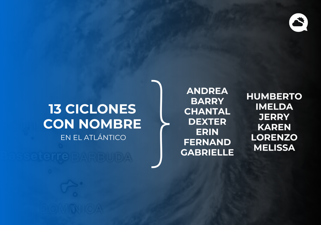Entre ellas, Erin, Humberto y Melissa. Todos fueron sistemas intensos que alcanzaron la categoría 5, pero cada uno tuvo su propio récord. Erin registró el mayor aumento de vientos sostenidos en 24 horas, pasando de 120 km/h a más de 250 km/h con un descenso de presión histórico, denotando su intensificación extrema.