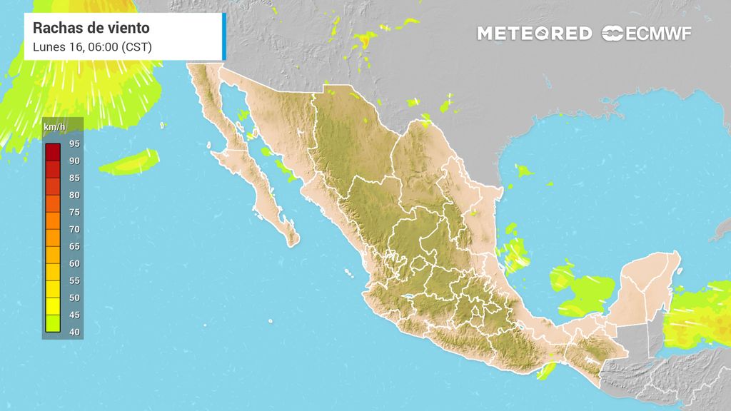 Marcadas diferencias regionales de presión, variaciones térmicas significativas entre la costa y el interior del país, así como la actividad tormentosa pronosticada, favorecerán rachas de 50 a 70 km/h, sin descartar posibles torbellinos y tolvaneras en zonas desérticas, en Coahuila, Nuevo León, Tamaulipas, Guerrero y Michoacán.
