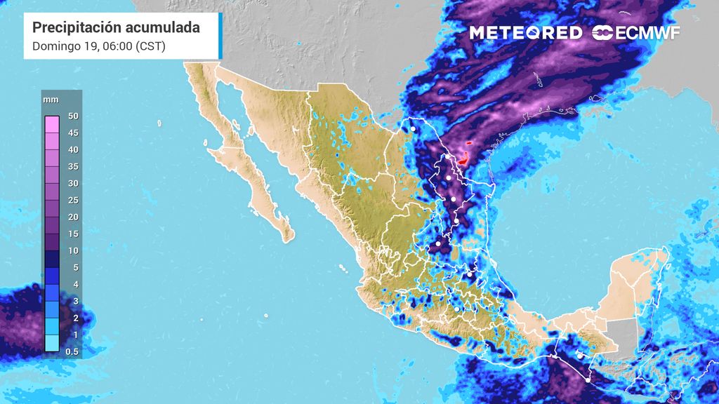 Su masa polar ayudará a refrescar dichas regiones, incluso sintiéndose frío en estados del noreste durante el domingo. La próxima semana, lluvias y tormentas se quedarían en la Sierra Madre Oriental, Bajío, Valle de México y parte del noreste que, en ausencia del anticiclón, estas regiones se refrescarían. El Pacífico y sureste mantendrían ambiente muy caluroso.
