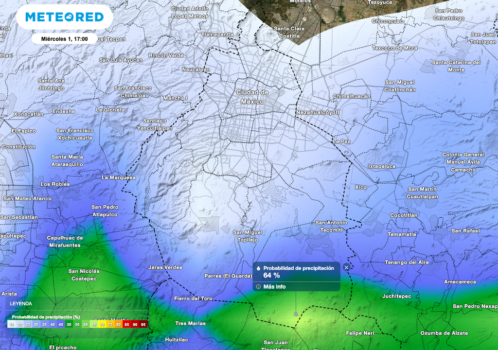 Aguaceros con acumulados de 20 a 50 mm, del 29 de septiembre al 3 de octubre. Finales de semana, el periodo más lluvioso principalmente en las alcaldías de La Magdalena Contreras, Xochimilco, Cuajimalpa, Alvaro Obregón, Milpa Alta y Tlalpan.