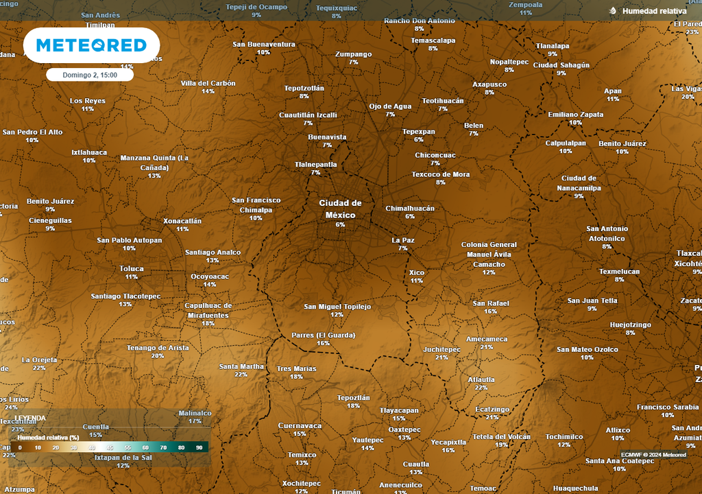 Para el amanecer de domingo, el ambiente será muy fresco, debido al cielo despejado que dominará por la madrugada, favoreciendo un mayor “enfriamiento” en comparación con días pasados, estimándose mínimas de 14 a 16 °C en la zona urbanizada de Ciudad de México y 12-14 °C en la conurbación con Estado de México.