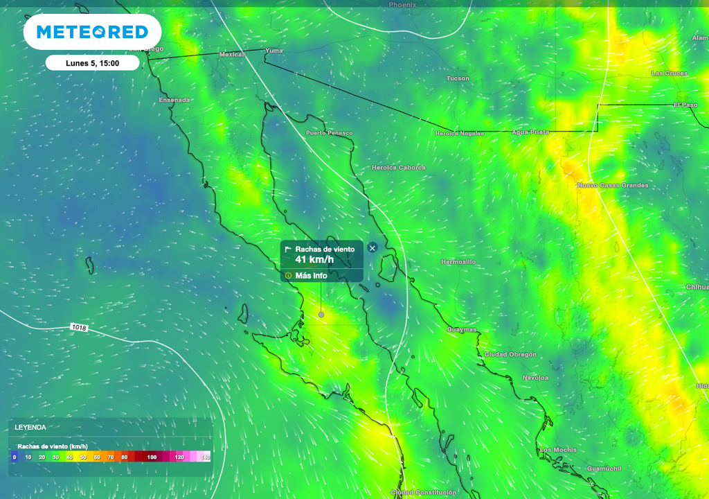 El viento de componente noroeste de 40 km/h con rachas que pudieran superar los 60 km/h, lo más fuerte se prevén principalmente en la parte central de Baja California. En cuanto al viento más intenso, se espera durante la tarde-noche de paso a oleaje de hasta 3 metros de altura en la costa oeste y central del estado.