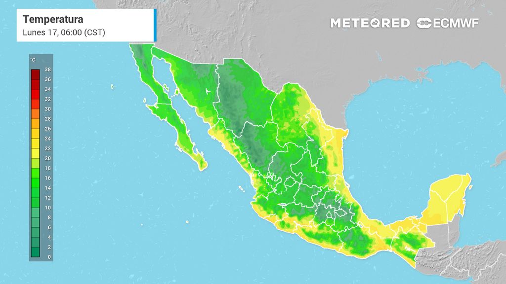 De lunes a jueves, temperaturas de 33-39°C en el noreste, sureste y Pacífico sur resaltando Nuevo León, Tamaulipas, Campeche, Yucatán, Michoacán y Guerrero, así como parte de la Huasteca y Coahuila. De viernes a domingo, el noreste se refrescará con valores de 20 a 30 °C, persistiendo en el sureste y Pacífico, para extenderse hasta Sinaloa y la región nuevamente, mayores a 35 °C.