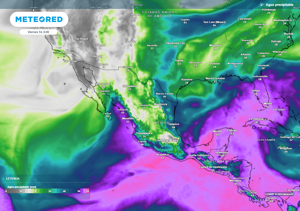 El viernes, las lluvias cubrirían gran parte del centro, oriente, sur y sureste resaltando los mismos estados del sureste, Veracruz (centro-sur), Oaxaca y Guerrero con locales de 100-200 mm; de 20-50 mm o mayores al sur de Puebla y Morelos, así como el centro-sur de Jalisco y Michoacán.