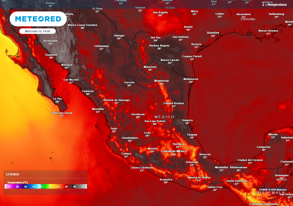 La situación extrema sería para el noroeste, donde va iniciando su época calurosa; favorecido por el anticiclón, las temperaturas máximas oscilarán de 40 a 44 °C, alcanzando de 45 a 51 °C al norte de Baja California, buena parte de Sonora y norte de Sinaloa de martes a jueves. Disminuirá un poco posteriormente, pero volviendo a subir próxima semana.