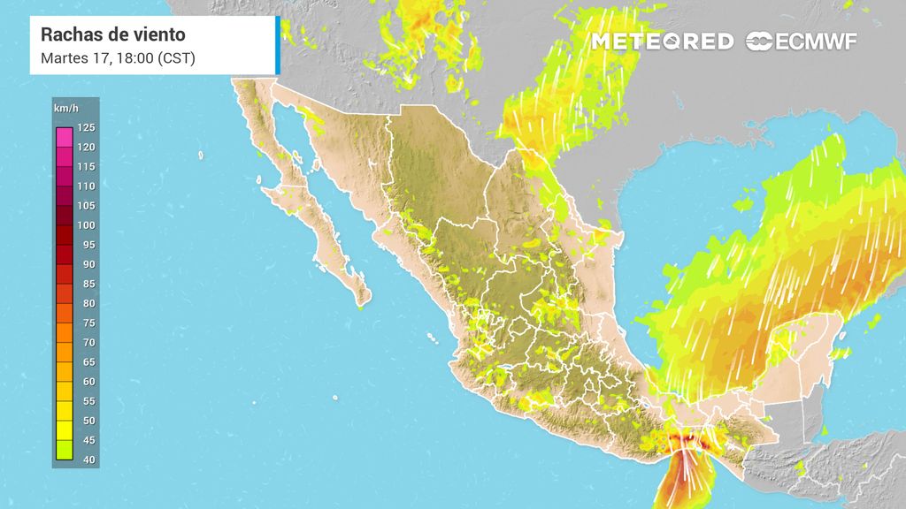 Este temporal se extenderá hacia el Istmo y Golfo de Tehuantepec, así como a Tabasco, Campeche y Yucatán, donde el fuerte gradiente de presión mantendrá condiciones adversas para la navegación. Las rachas intensas de viento podrían ocasionar caída de árboles, afecciones en la infraestructura ligera y oleaje elevado en zonas costeras.