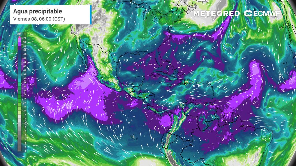 Los días más lluviosos serían de martes a jueves en el sureste y región de Istmo, miércoles a domingo en el Pacífico extendiéndose gradualmente de Chiapas hasta el Mar de Cortes en Sonora y a mitad de semana en la región centro, resaltando el fin de semana. Las lluvias más intensas con granizo pueden favorecer inundaciones, deslizamientos y desbordamientos.