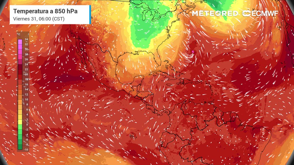 En el Altiplano incluyendo del Bajío al Valle de México rondarían los 20-30 °C y en costas/planicie de 30-35 °C. Desde el miércoles, el norte y noreste se refrescarían con máximas de 20 a 29 °C hasta el norte de Veracruz llegando al centro por la tarde-noche con 15-20°C, calentándose el noroeste con 35-41 °C.