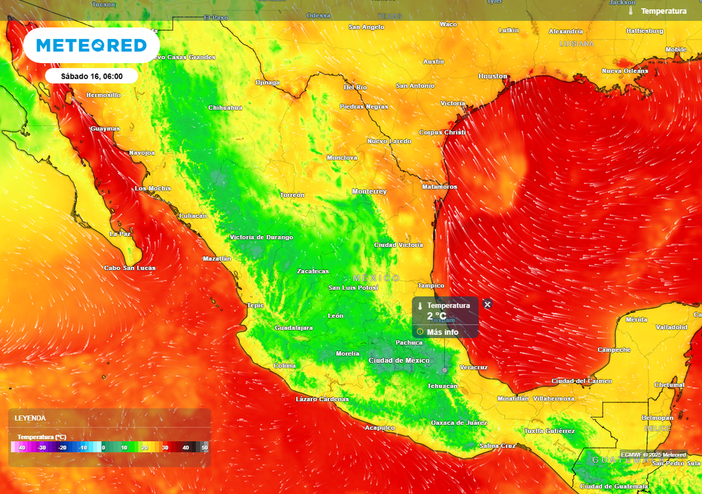 En el Altiplano, del Valle de México al Bajío, en general serían tardes templadas con 18-27 °C y en montañas de 11 a 20 °C; el Pacífico sur se prevén de 30 a 35 °C. Es probable que se sienta un poco más de frío en los amaneceres del Estado de México, Hidalgo, Ciudad de México, Morelos, Puebla, Tlaxcala y Veracruz con 8 a 13°C, rondando los 0 a 6°C en valles, campo abierto y montañas.