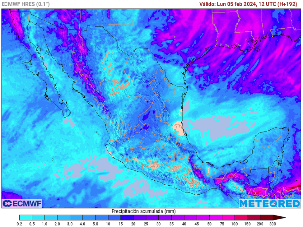 Se estiman cantidades de 5-20 mm con locales de 30-50 mm especialmente en estados del sur donde algunas tormentas con granizo se podrían generar, además de nevadas aisladas en montañas del centro y noroeste.