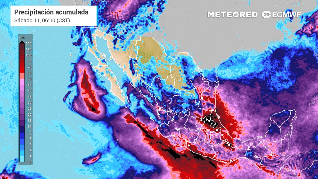 También se prevén lluvias moderadas (5 a 25 mm) en Chihuahua, Coahuila, Durango, Zacatecas, Aguascalientes, Sinaloa y Nayarit.