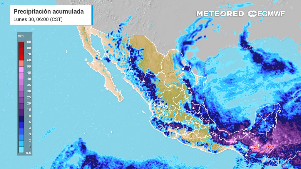 De acuerdo con las predicciones, se esperan precipitaciones de fuertes a muy fuertes de 50 a 75 mm en los estados de Veracruz, Tabasco, Oaxaca y Chiapas. Estas condiciones son producto del ingreso de humedad desde el Océano Pacífico y el Golfo de México, potenciado por inestabilidad atmosférica.