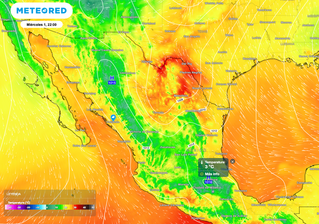 El viento será un factor crítico esta noche, con rachas que podrían superar los 80 km/h y generar tolvaneras en Chihuahua, Durango y Baja California. En el litoral del Golfo de México, se prevén fuertes rachas de hasta 60 km/h principalmente en costas de Tamaulipas y norte de Veracruz, y oleaje elevado de 1 a 3 metros de altura.