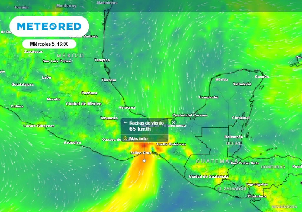 Y aunque los efectos no se presentarán directamente en la región, hacia el Golfo de Tehuantepec se anticipa la posibilidad de intensos vientos, con rachas que pueden superar los 60 km/h. Las condiciones, están asociadas también a la presencia de una amplia vaguada que se extiende desde el Centro y hacia el Sureste de México.