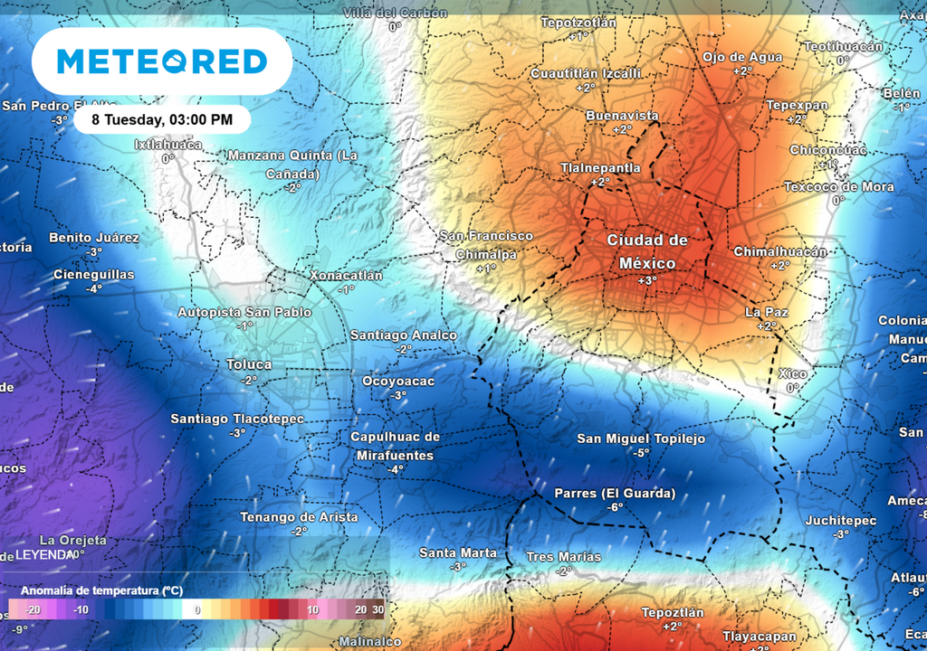 En el Valle de México, la semana comienza con sol, calor y viento del sur-suroeste. Este flujo mantendrá temperaturas elevadas hasta el lunes, cuando cambie al norte-noreste y comience un descenso térmico. La masa de aire polar-ártica traerá tardes templadas y noches frescas a frías. Hacia el fin de semana, se espera que la vaguada polar en el Golfo de México mantenga a raya el calor.