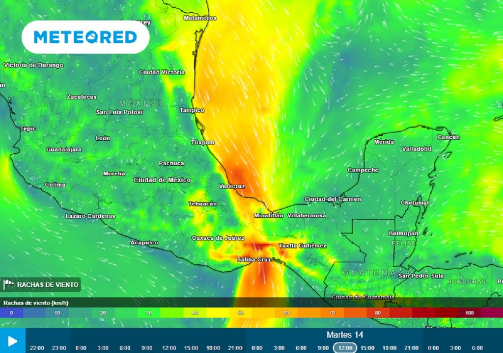 En el Istmo y Golfo de Tehuantepec tendría el mismo comportamiento, iniciando hoy viernes, aumentando lentamente y con máximo de 80-120 km/h de lunes a martes. El miércoles iría cediendo sus efectos, aunque este día podría alcanzar la Sonda de Campeche con 35-55 km/h.