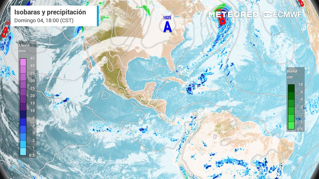 La llegada de algo de humedad del Pacífico favorece la presencia de algunas lluvias en partes del Occidente y Sur y sureste del país, además de ambiente frío a gélido, con heladas y nieblas al amanecer-anochecer, principalmente sobre entidades del Norte y Centro.