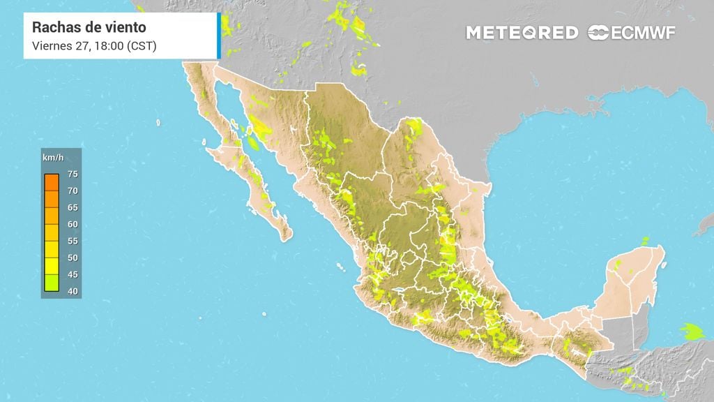 Calor y fuertes vientos del sur en el estado de Tamaulipas, donde se prevén rachas de hasta 70 km/h