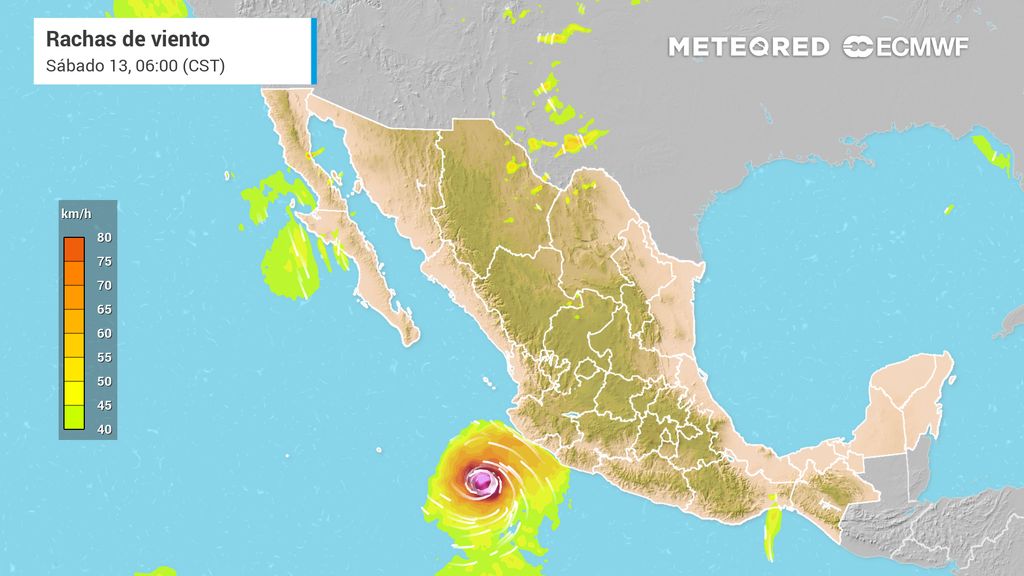 Al respecto, se pronostican lluvias intensas (75 a 100 mm) en Guerrero, Puebla, Veracruz, Oaxaca, Chiapas, Tabasco, Campeche, Yucatán y Quintana Roo, lluvias muy fuertes (50 a 75 mm) en Jalisco, Colima, Michoacán, Tamaulipas, San Luis Potosí, Querétaro, Hidalgo, Estado de México y Morelos, lluvias fuertes (25 a 50 mm) en Sinaloa, Nayarit, Nuevo León, Guanajuato, Ciudad de México y Tlaxcala.