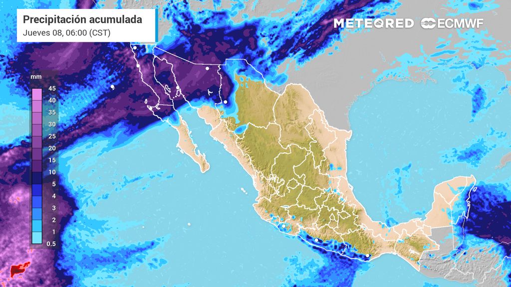 A partir de este martes 6 de enero, la Península de Baja California comenzará a registrar chubascos y vientos con rachas de hasta 50 km/h. Sin embargo, la mayor intensidad del sistema se espera para los días miércoles 7 y jueves 8 de enero.