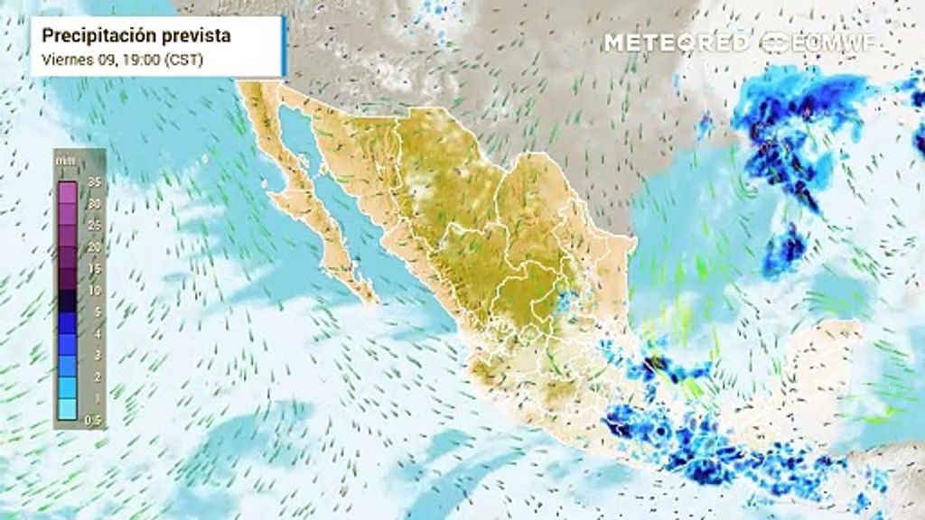 Además de lluvias moderadas (5 a 25 mm) en Chihuahua, Coahuila, Durango, Zacatecas, Aguascalientes, Guanajuato, Jalisco y Michoacán, y lluvias ligeras (menores a 5 mm) en Sinaloa. En una situación diametralmente opuesta, el escaso contenido de vapor de agua mantendrá tiempo estable en el noroeste del país.