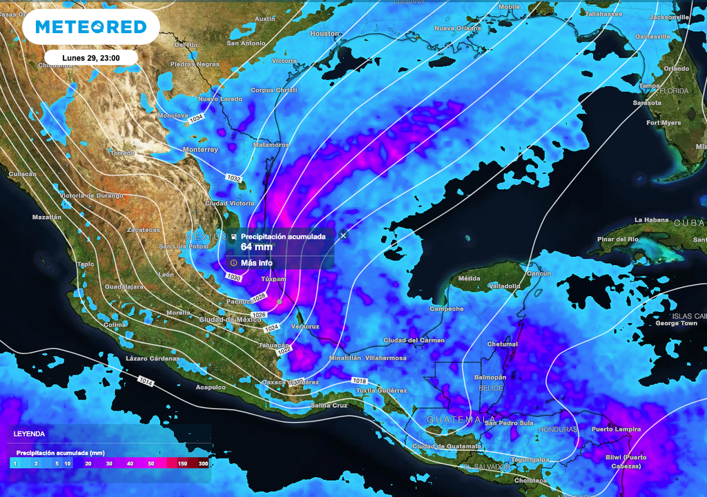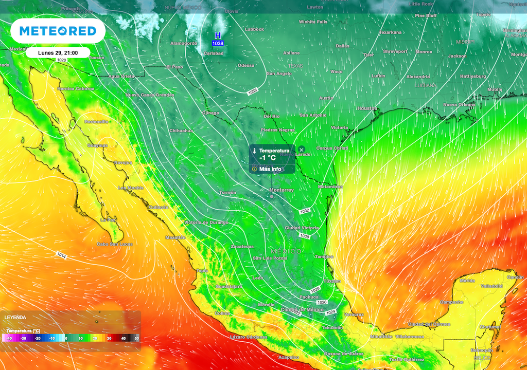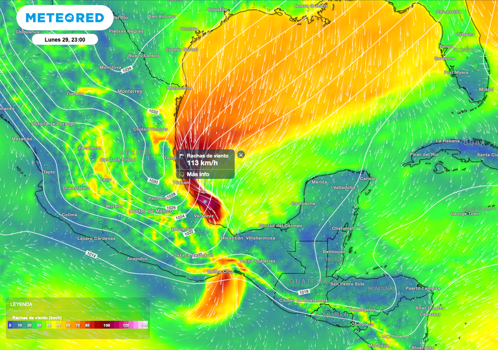 Conforme se interne y extienda la masa de aire ártico favorece un evento de “Norte” con rachas de viento de 80 a 120 km/h en costas de Tamaulipas, Veracruz, Tabasco hasta el Istmo y Golfo de Tehuantepec que contempla a los estados de Oaxaca y Chiapas. Los fuertes vientos dan paso a oleaje de 4 a 6 metros de altura en costas de Tamaulipas, Tabasco, Veracruz Y y en el Golfo de Tehuantepec.