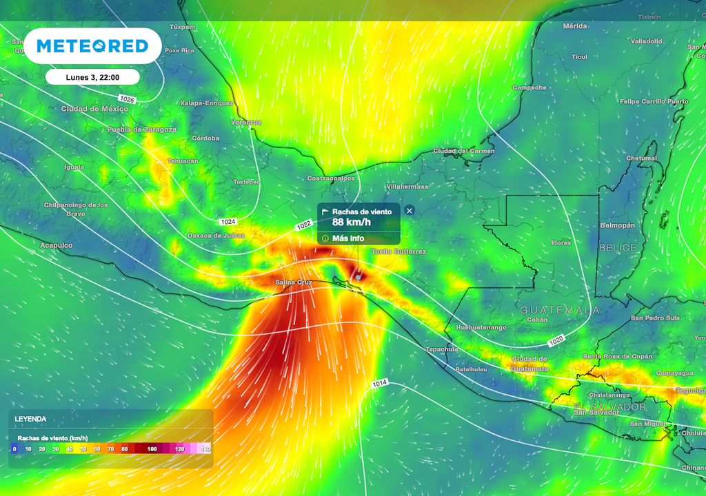 La masa de aire polar que domina gran parte de México, también da paso a viento de hasta 50 km/h con ráfagas de 60 a 90 km/h entre Tamaulipas y Veracruz. Por otro lado, hacia el Sur y Suroeste, se espera un efecto de Tehuantepecano con rachas de hasta 100 km/h principalmente sobre el Istmo y Golfo de Tehuantepec.