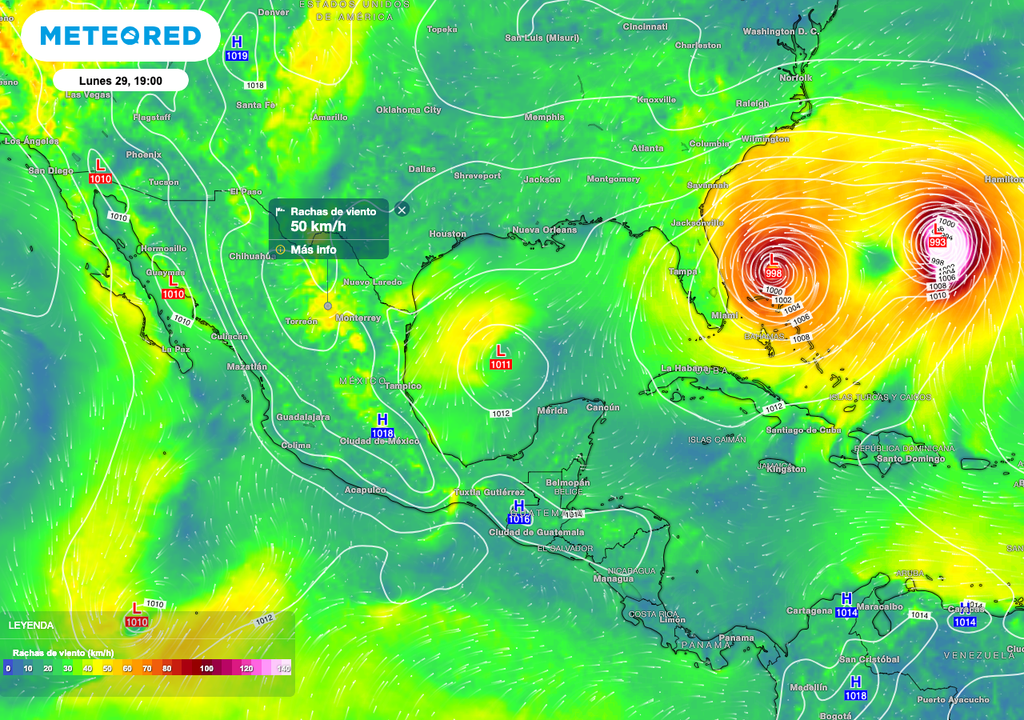 En cuanto al viento, las rachas serán del orden de 30 a 40 km/h siendo los estados de Coahuila, Nuevo León, Tamaulipas, Veracruz, Hidalgo, San Luis Potosí, Guanajuato y Querétaro, serán las entidades con rachas significativas.