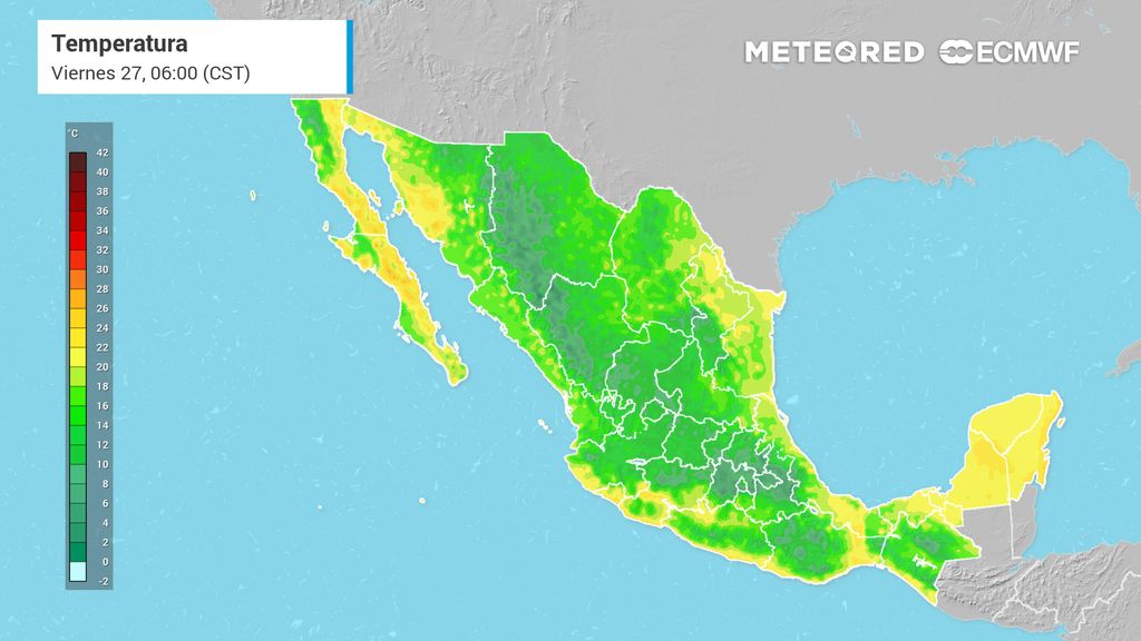 En un marcado contraste con las sofocantes temperaturas diurnas, la Mesa del Norte y la Mesa Central experimentarán un ambiente de frío a muy frío durante los amaneceres y los anocheceres. Durante la madrugada del viernes se prevén temperaturas mínimas críticas de -5 a 0 grados Celsius, acompañadas de heladas peligrosas en las extensas zonas serranas de Chihuahua, Durango, Zacatecas, Guanajuato, Michoacán, Estado de México, Hidalgo, Tlaxcala, Puebla y Veracruz.