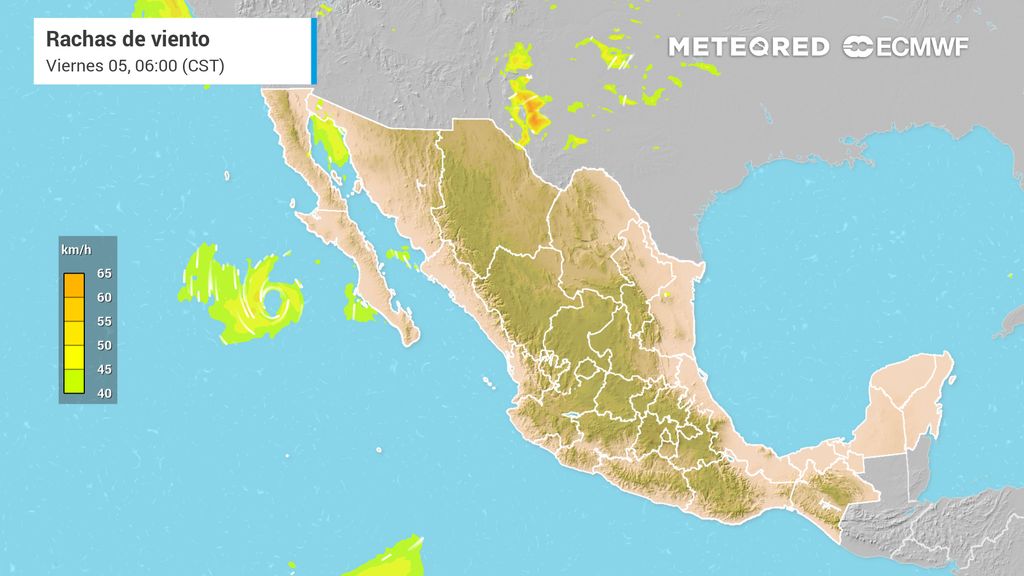 La circulación del ciclón tropical “Lorena” propiciará vientos de 70 a 80 km/h en Baja California Sur. Además, el establecimiento de gradientes de presión a nivel regional propiciarán rachas de 40 a 60 km/h en Sonora, Sinaloa, Chihuahua, Coahuila, Nuevo León, San Luis Potosí, Jalisco y Colima.