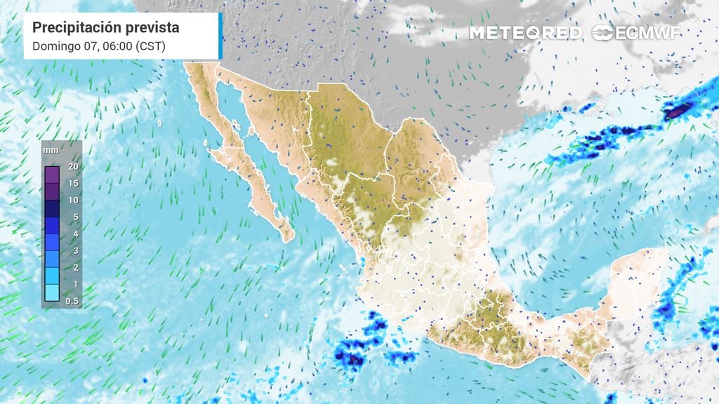 También se esperan lluvias ligeras (menores a 5 mm) en Guanajuato, Estado de México, Ciudad de México, Morelos, Tabasco, Campeche y Yucatán.