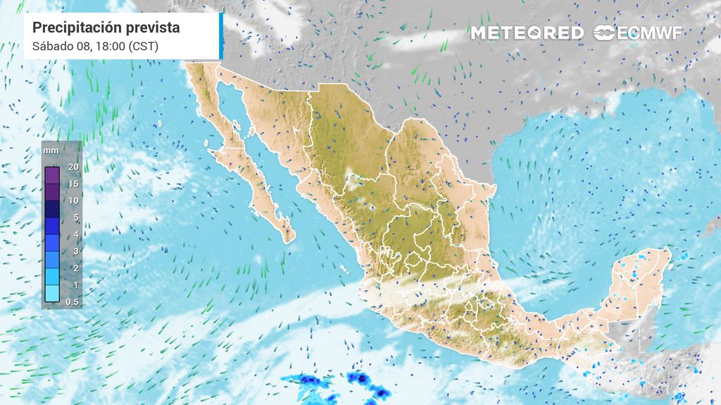 De igual manera, se pronostican lluvias ligeras (menores a 5 mm) en Jalisco, Colima, Michoacán y Veracruz.