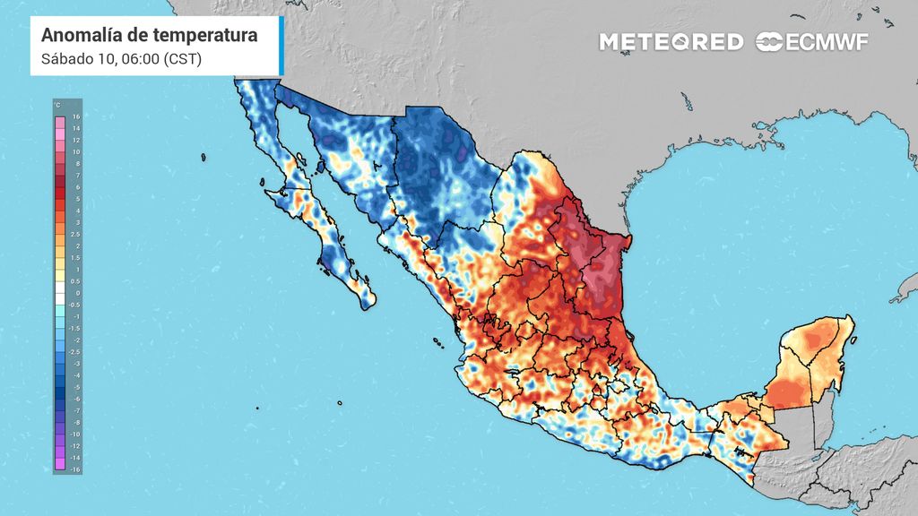 Mientras el norte del país se congela, el ingreso de humedad proveniente del océano Pacífico, el golfo de México y el mar Caribe propiciará lluvias ligeras (menos de 5 mm) en el occidente, sur y sureste, incluyendo la península de Yucatán. Estados como Guerrero, Oaxaca y Chiapas vivirán un escenario muy caluroso, con temperaturas máximas que podrían alcanzar los 40 °C.