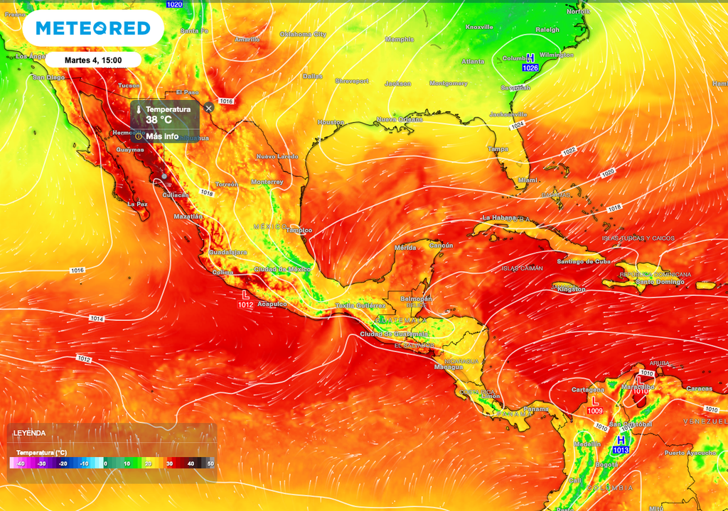 Los valores en la región pudieran rondar entre 32 a 38 °C, principalmente en los estados de Baja California, Baja California Sur, Sonora, Chihuahua, Coahuila, Sinaloa, Nayarit, Jalisco, Colima, Michoacán, Guerrero, Oaxaca y Chiapas.