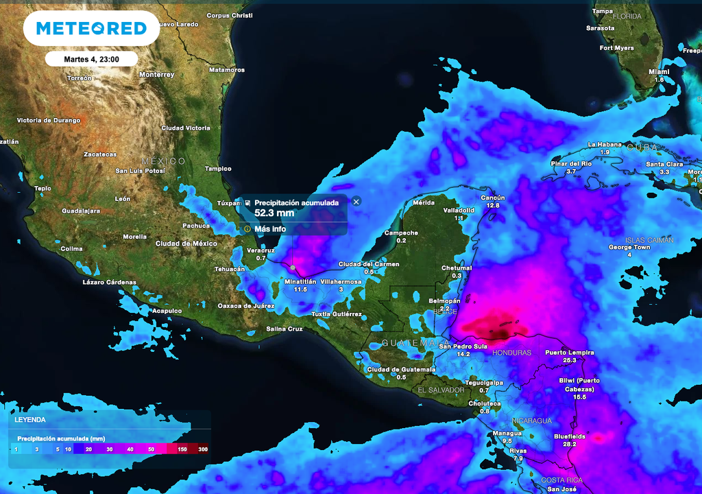 Este martes 4 de noviembre, el frente frío 12 recorre el sur del Golfo de México para cruzar por la Sonda de Campeche y llegar a Península de Yucatán, regiones donde se verá el avance de la barrera nubosa.