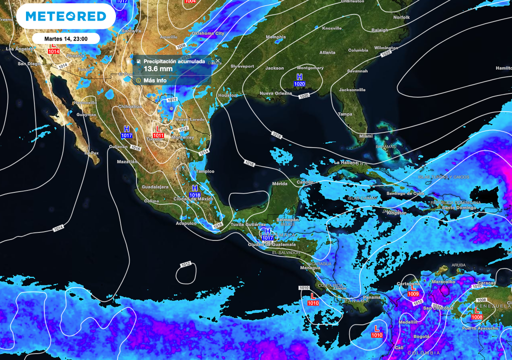 Simultáneamente, el Centro y Sureste se ven influenciados por vaguadas en superficie que se alimentan de la llegada de humedad proveniente del Golfo de México y el Mar Caribe, a ello se suma el forzamiento orográfico y la temperaturas calurosas, generando un entorno propicio para tormentas vespertinas, pero que, serán muy aisladas.