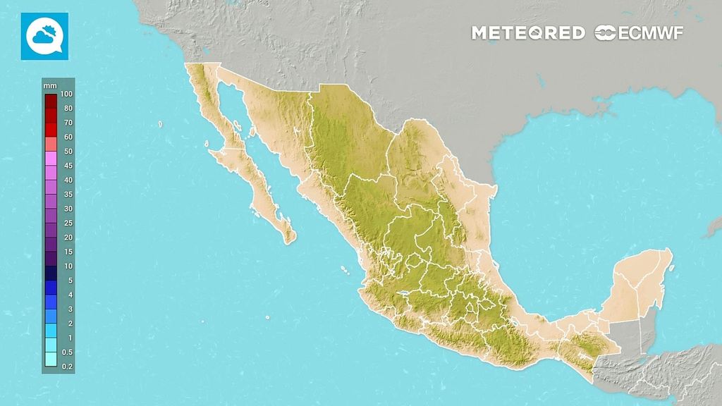De la misma manera, se pronostican lluvias de ligeras a moderadas (5 a 25 mm) en los estados de Coahuila, Colima, Michoacán, Guerrero, Oaxaca, Veracruz y Tabasco.