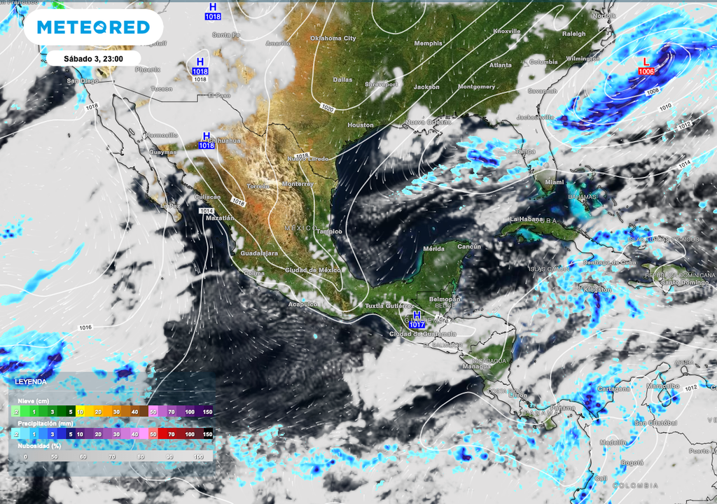 La llegada de humedad del Pacífico en combinación con un vaguadas en superficie, favorece la presencia de algunas lluvias en partes del Occidente principalmente en la porción de la Península de Baja California y Noroeste del país; por otro lado, la región Suroeste también se vera influenciada por la llegada de nubosidad convectiva.