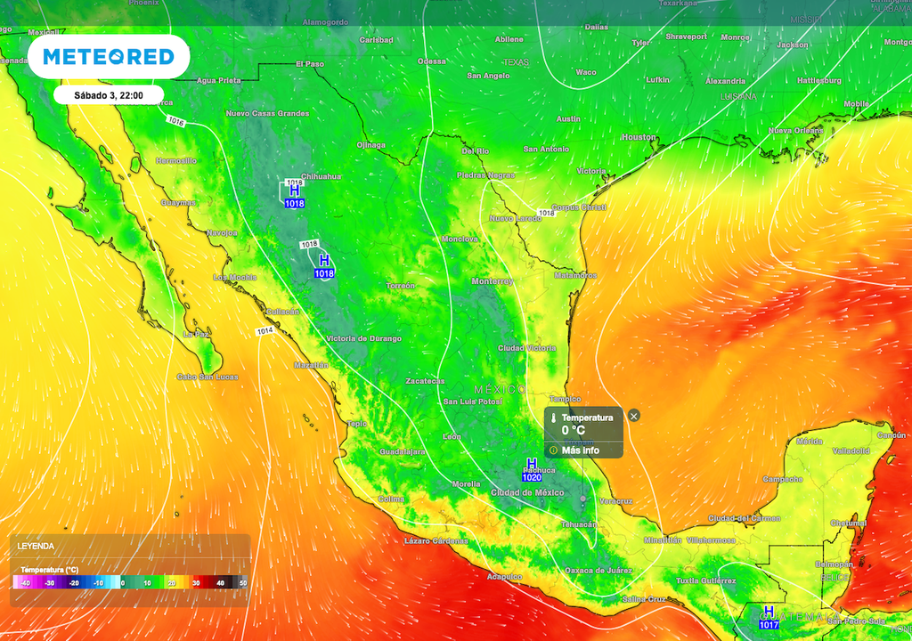 Además de temperaturas mínimas de 0 a 5 °C en Coahuila, Aguascalientes, Jalisco, Querétaro, Ciudad de México y Morelos.