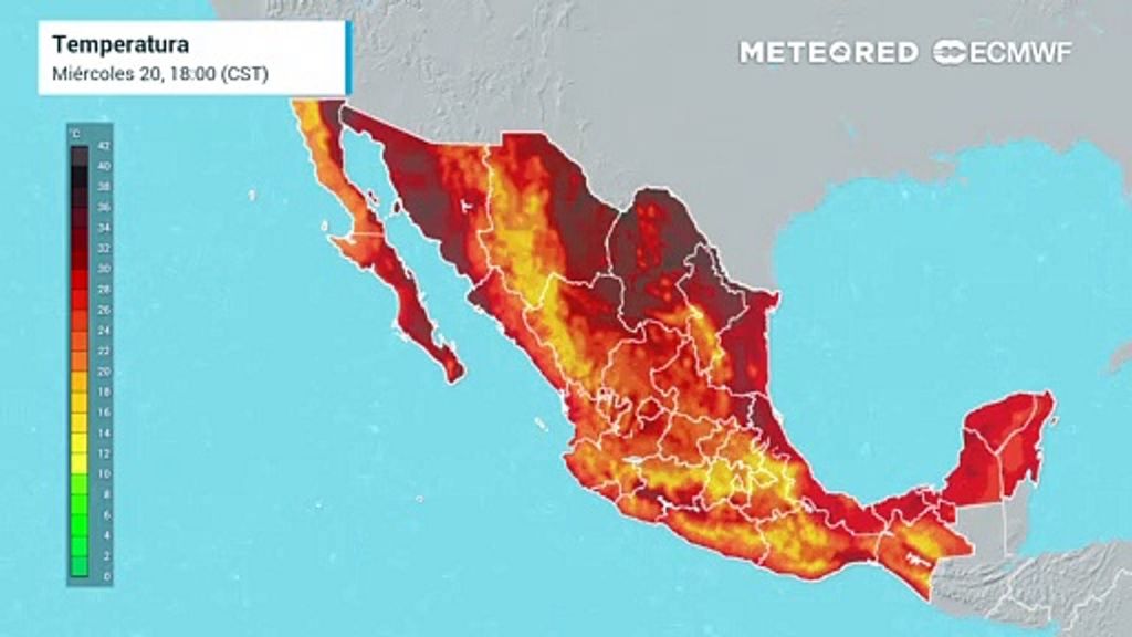 Para la tarde de este jueves, se pronostica que se presenten temperaturas extremadamente calurosas de entre 40 °C y 45 °C en Sonora y Sinaloa. Así mismo, se prevén temperaturas muy calurosas de entre 35 °C y 40 °C en las entidades federativas de Baja California, Baja California Sur, Chihuahua, Durango, Coahuila, Nuevo León, Tamaulipas, San Luis Potosí, Veracruz, Nayarit, Jalisco, Colima, Michoacán, Guerrero, Oaxaca, Chiapas, Tabasco, Campeche, Yucatán y Quintana Roo.