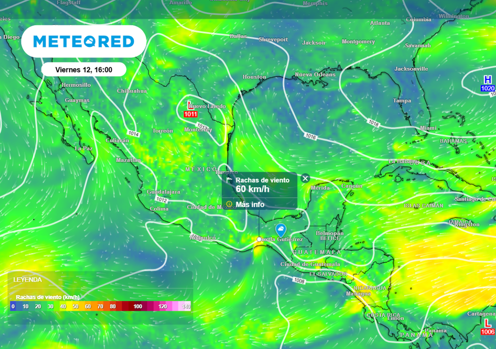 Al Sur-Suroeste de México, se espera un efecto de “Tehuantepecano”, con rachas de hasta 60 km/h sobre el Istmo y Golfo de Tehuantepec. El estados mayormente influenciados son Oaxaca.