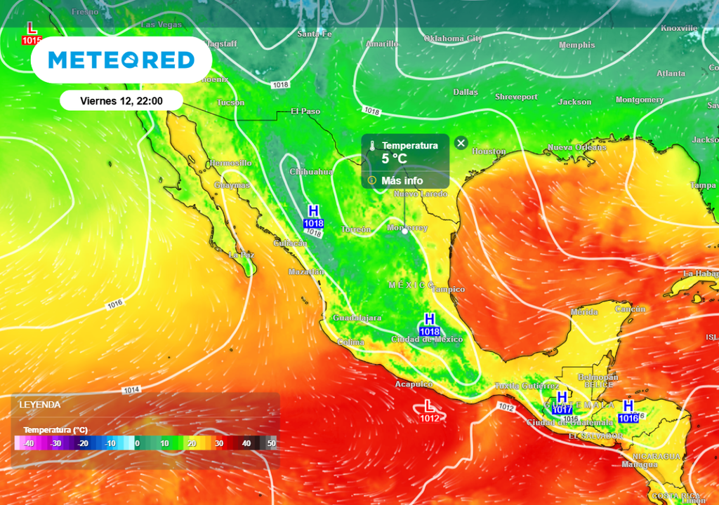 Respecto a los vientos, estos serán moderados siendo importantes al Sur de México. En cuando a las temperaturas, estas serán frías a frescas por la mañana y noche, y templadas a cálidas durante el mediodía.