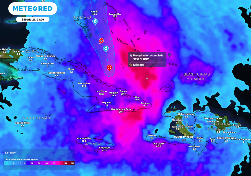 Derivado de su presencia y desplazamiento, se prevén lluvias significativas, oleaje elevado y vientos tormentosos, sobre porciones del Este de Cuba y las Bahamas durante este fin de semana.