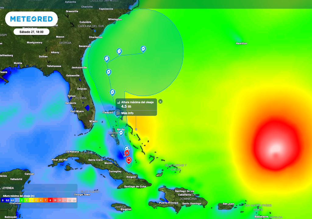 Por el momento, están en vigilancia las Bahamas, la costa sureste de Estados Unidos (desde Florida hasta Carolina del Norte), deberían vigilar la progreso de este sistema. Se podrían emitir alertas o advertencias adicionales. requerido esta noche o el domingo.